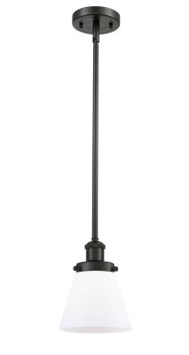 INNOVATIONS LIGHTING 916-1S-OB-G61-LED BALLSTON SMALL CONE 1 LIGHT 6 INCH MATTE WHITE GLASS MINI PENDANT, OIL RUBBED...