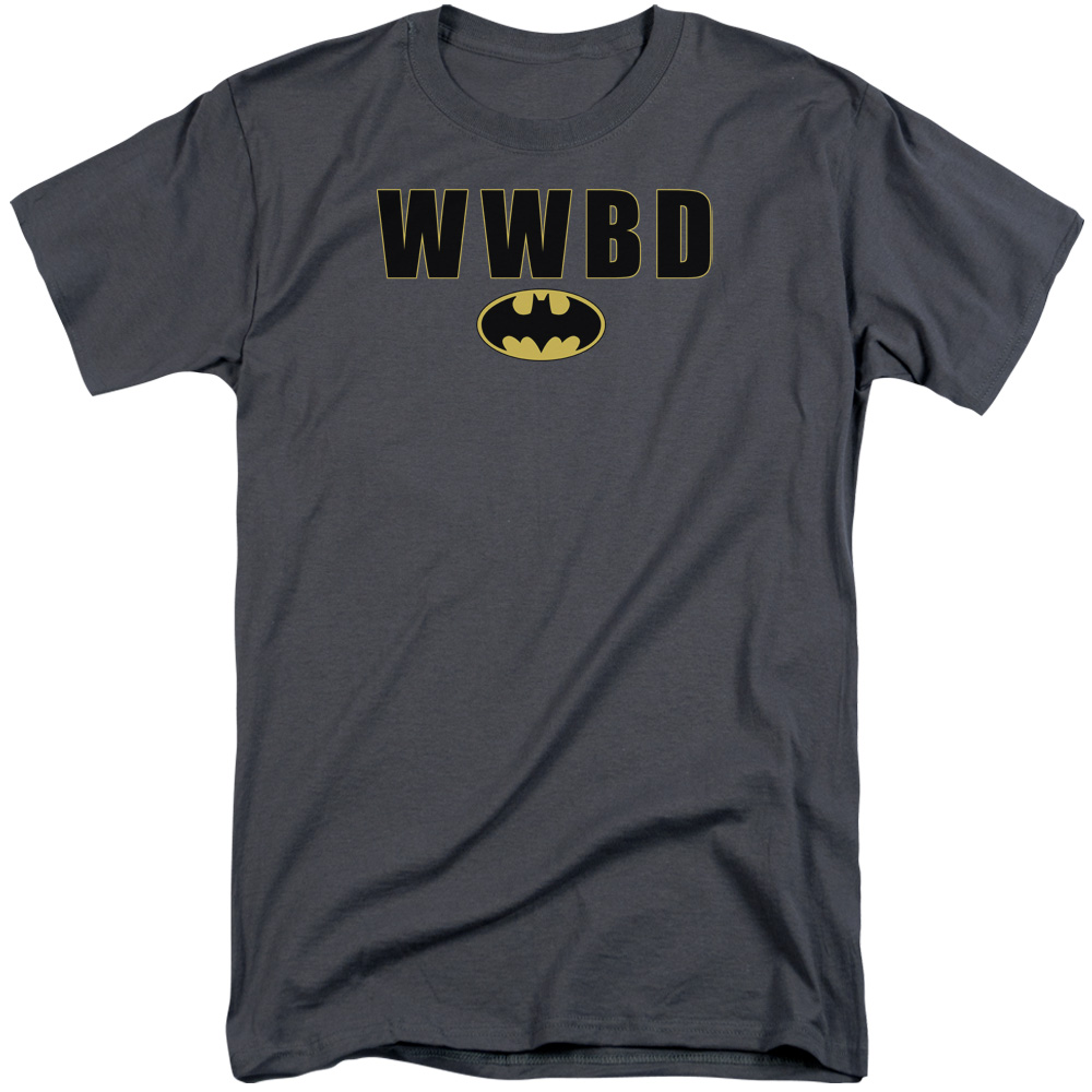 Trevco BM1492-ATT-5 Batman & Wwbd Logo Adult Cotton Tall Fit Short Sleeve T-Shirt, Charcoal - 2X