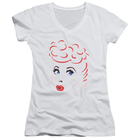 Trevco Lucy-Lines Face Junior V-Neck Tee, White - Small
