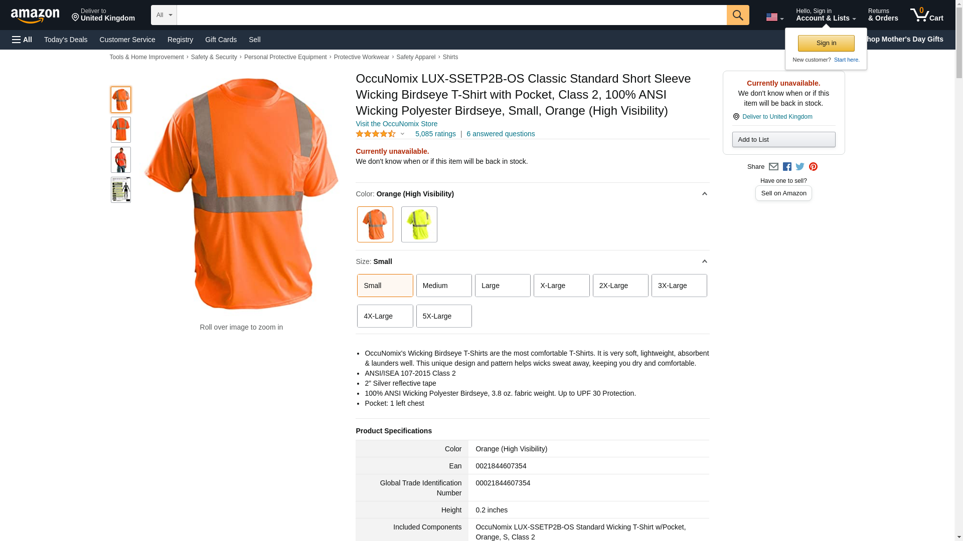 | Feature | <b>Price For:</b> Each <b>ANSI Class</b>: 2 <b>Gender</b>: Men\'s <b>Standards</b>: ANSI/ISEA 107-2010 <b>Color</b>: Orange <b>Material</b>: Wicking Birdseye <b>Fabric Weight</b>: 3.8 oz. <b>Item</b>: T-Shirt <b>Number of Outside Pockets</b>: 1 <b>Fits Chest Size</b>: 36" <b>Sleeve Length</b>: 8" <b>Size</b>: S <b>Length</b>: 28" <b>Country of Origin (subject to change)</b>: China |