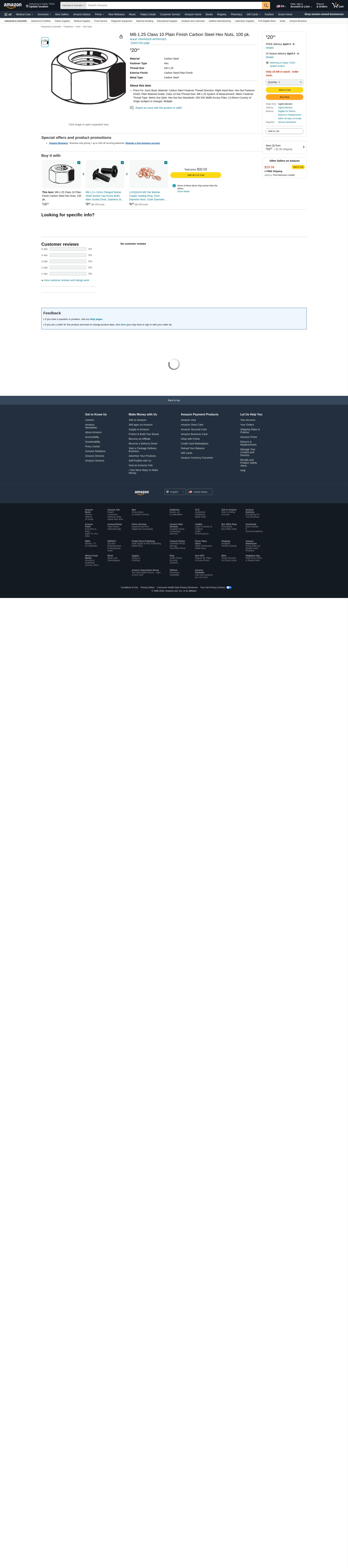 'Hex Nut, Nut Style Hex Nut, System of Measurement Metric, Carbon Steel, Material Grade Class 10, Fastener Finish Plain, Fastener Thread Direction Right Hand, Dia./Thread Size M8-1.25, Fastener Thread Type Metric, Width Across Flats 13.00mm, Nut Height 6.50mm, Nut Standards DIN 934, Package Quantity 100'