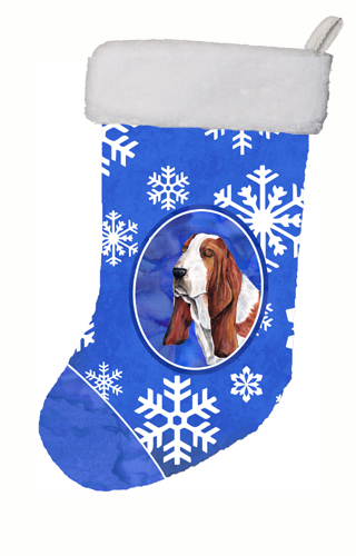 11 x 18 in. Basset Hound Winter Snowflakes Christmas Stocking