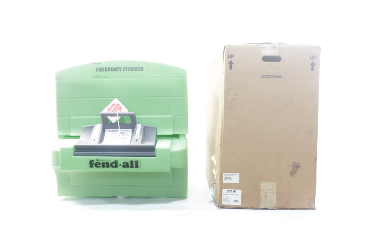 Fend-all Pure Flow 1000 Emergency eyewash station features a fluid pressure balancing system that renders a constant fluid flow rate and stream height that offers 0.4 gpm for the entire 15 min of flushing period required by ANSI Z358.1-2004. Area of application includes chemical, construction, food services, government, medical, pharmaceutical and utilities. Patented system provides purified, contaminant-free and physiologically correct Eyesaline solution from factory-sealed cartridges. Factory-sealed fluid cartridges help to eliminate mixing, measuring and the opportunity for airborne particles or microorganisms to pollute the fluid before using. Unique nozzle design provides a preserved, buffered, saline solution superior to tap water for emergency eye care. Integral fluid reservoir captures waste fluid to eradicate spill hazards and simplifies fluid disposal. Expiration date is rendered on an activation straps and the cartridge lasts at least four times longer than other primary, self-contained eyewashes. Easy maintenance ESP RFID technology offers you instant, accurate safety information about the cartridges while the easy view window makes inspection and maintenance. It meets ANSI Z358.1 and is SEI certified.
