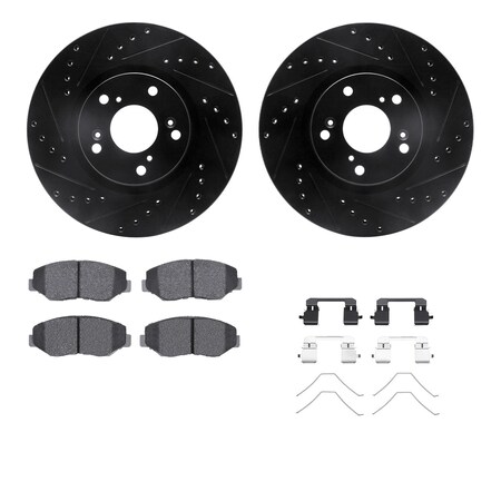 Dynamic Friction Company Front Brake Rotors-Drilled and Slotted-Black with 5000 Advanced Brake Pads includes Hardware 8512-59067