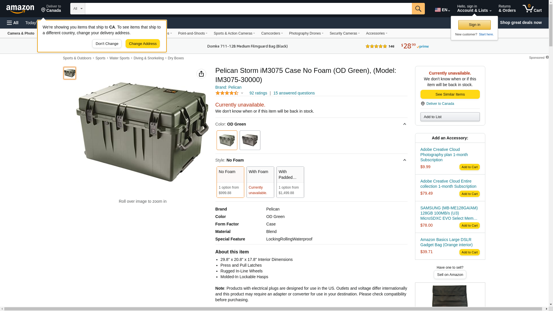 - Pelican iM3075 Storm Case (No foam) - 6.38 ft³ - Internal Dimensions: 20.80" Width x 17.80" Depth x 29.80" Length - External Dimensions: 24.4" Width x 19.3" Depth x 33.3" Length - HPX Resin - Olive DrabShow More + - IM3075-30000