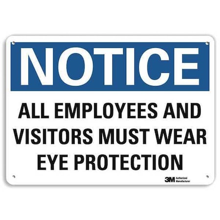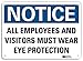Notice Sign, Vertical Rectangle, Number of Printed Sides 1, English, Sign Format Traditional OSHA, Sign Legend All Employees And Visitors Must Wear Eye Protection, Sign Legend Background Color White, Sign Legend Style Text
