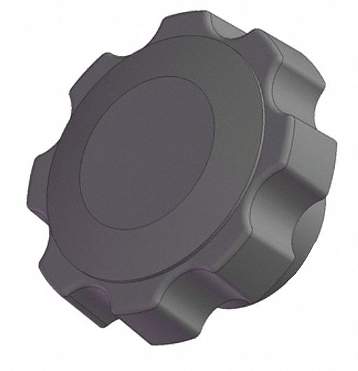 Hand Knob, Handle Type Fluted, Handle Material Polypropylene, Steel, Mounting Type Threaded Insert, Thread Size 5/16 In.-18, Handle Dia. 2-1/2 in, Base Dia. 1-1/4 in, Overall Height 1-1/4 in, Tap Type Blind Hole, Includes -, Standards -, Color Black, Features Soft Touch Material, Finish Zinc Plated Component