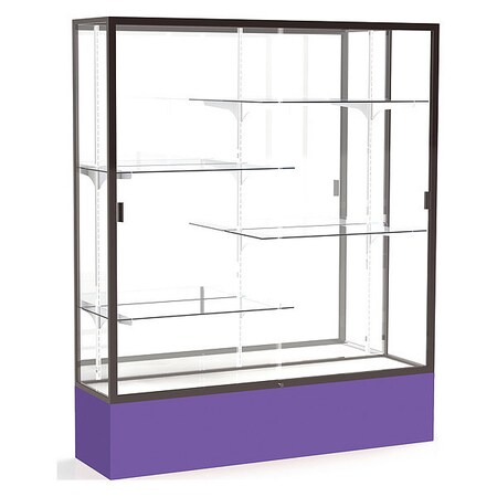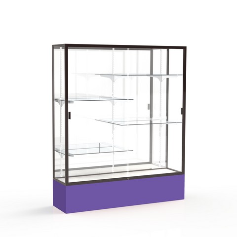 Waddell Spirit Mirror Back Display Case, 60W by 72H by 16" D, Dark Bronze Finish with Purple Base