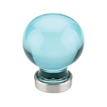 Crystal Collection - 1" Bristol Cyan Glass Knob in Satin Nickel by Emtek Hardware - 86527US15 | Knobs 4 Less