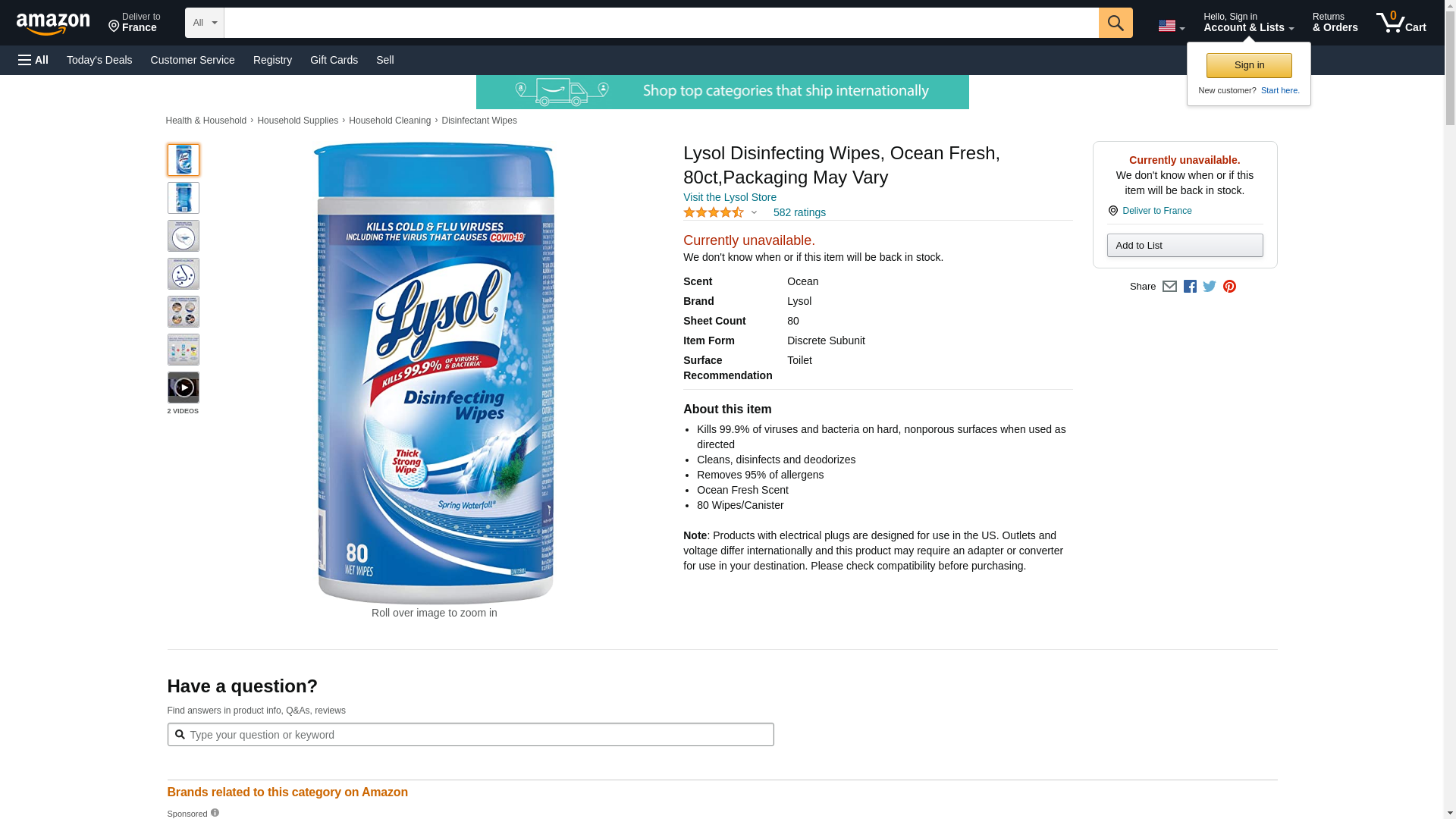 Lysol Disinfecting Wipes, Ocean Fresh, 80 ct