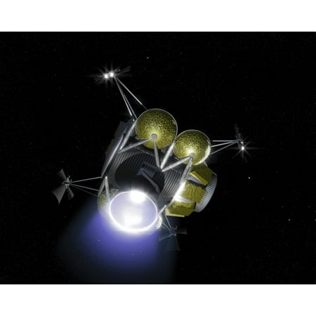 Concept of a crew blasting off from the moons surface in a portion of a lunar lander Poster Print