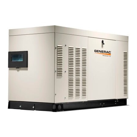 This Generac QuietSource Series Liquid-Cooled Standby Generator features an aluminum enclosure for extra corrosion protection in coastal areas. Assembled in U.S.A. Not intended for use as primary power in place of utility or in life-support applications. Read the owner's manual in its entirety before using this product. Due to size of this generator, a crane or forklift is required for unloading. Noise Level dB 61/70, Battery Included Yes, Battery Required Yes, Enclosure Aluminum, Engine Cooling Liquid, Fuel Type Natural gas or liquid propane, Surge Watts kW 22, Engine Inline, UL Listed Yes, Dimensions L x W x H in. 62 1/5 x 30 3/5 x 38 3/5, Surge Watts NG kW 22, Auto Shutdown Yes, Engine Displacement cc 2.4L, Rated Watts kW 22, Surge Watts LP kW 22, Phase Single, Rated Watts NG kW 22, Amps 92, Rated Watts LP kW 22, Volts 120/240. Aluminum, corrosion-resistant enclosure Patented Quiet-Test low-speed exercise mode Automotive-grade liquid-cooled engines run at lower speed for reduced sound output Automatic safety shutdowns and exerciser Transfer switch required sold separately Model Number: RG02224ANAX. Size: 22. Age Group: Adult.