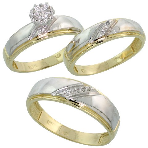 World Jewels 10K Yellow Gold 0.09 CT. Brilliant Cut Diamond Engagement Wedding Ring, Ladies Size 6.5