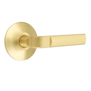 Brass Modern Hardware Collection - Half Dummy Aston Right Handed Lever with Modern Rose in Satin Brass by Emtek - 5057AST.HALF.US4-RH | MyKnobs