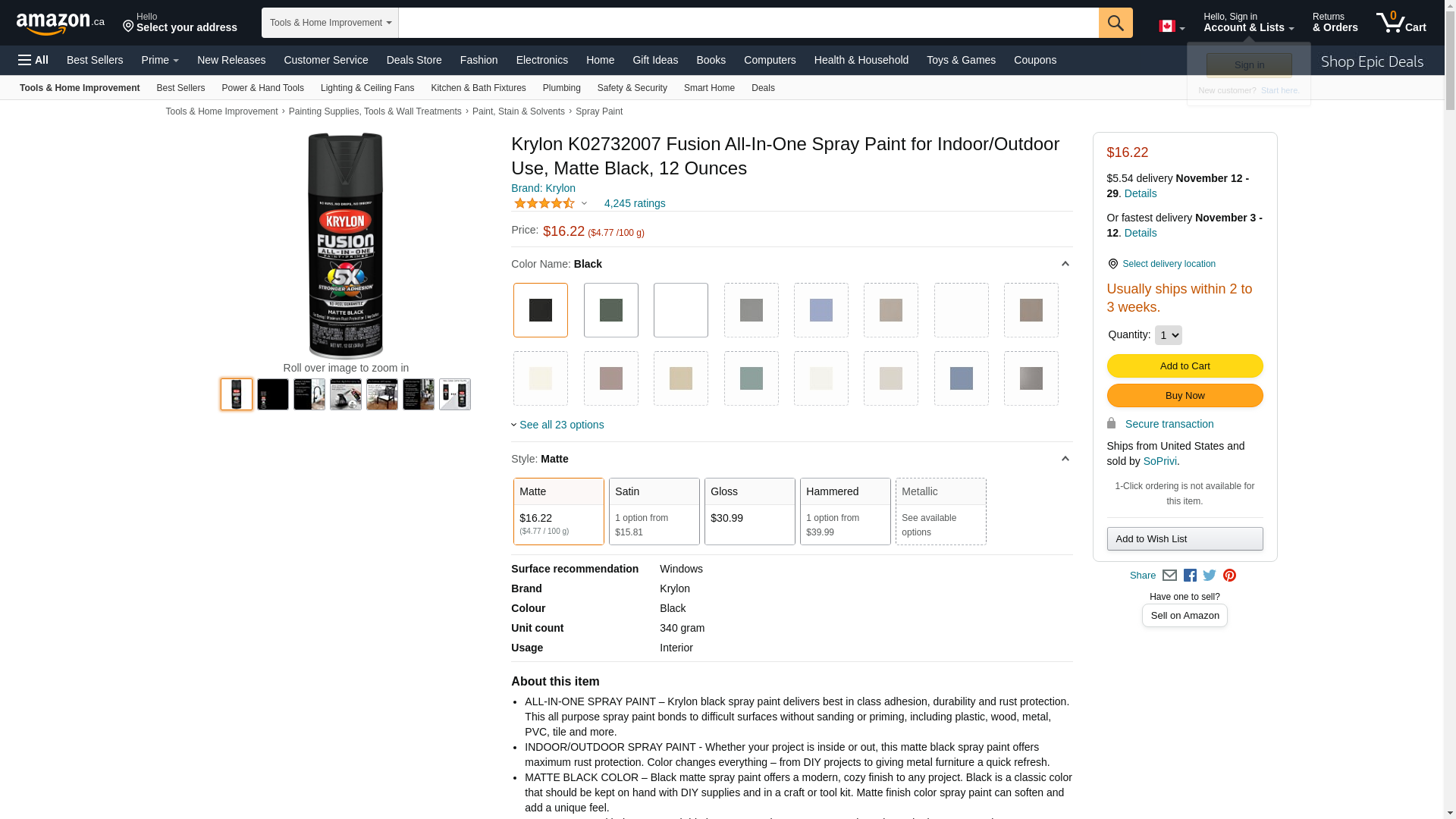 Krylon Fusion All-In-One is a premium product that bonds with 5X Stronger Adhesion to difficult surfaces such as plastics and ready-to-assemble furniture without sanding or priming. This product provides maximum rust protection for all outdoor projects and offers a broad color palette with multiple finishes and sheens for indoors and out.; ; Brand Name: Krylon Sub Brand: Fusion All-In-One Sheen: Matte Color: Black Product Type: Paint+Primer Spray Paint Container Size: 12 oz Coverage Area: 25 sq ft Inverted Spray Ability: Yes Primer Required: No Time Before Recoating: 48 hr Dry Time: 25 - 120 min UV Resistant: Yes Indoor or Outdoor: Indoor and Outdoor Clean Up: Solvent Skid Resistant: No Water Resistant: No Color Family: Black Recommended Surface: Wood, Metal, Wicker, Plastic, Glass, Plaster/Ceramic, PVC, Hard Vinyl, Tile, Wrought Iron, Masonry and Laminate Mildew Resistant Finish: No