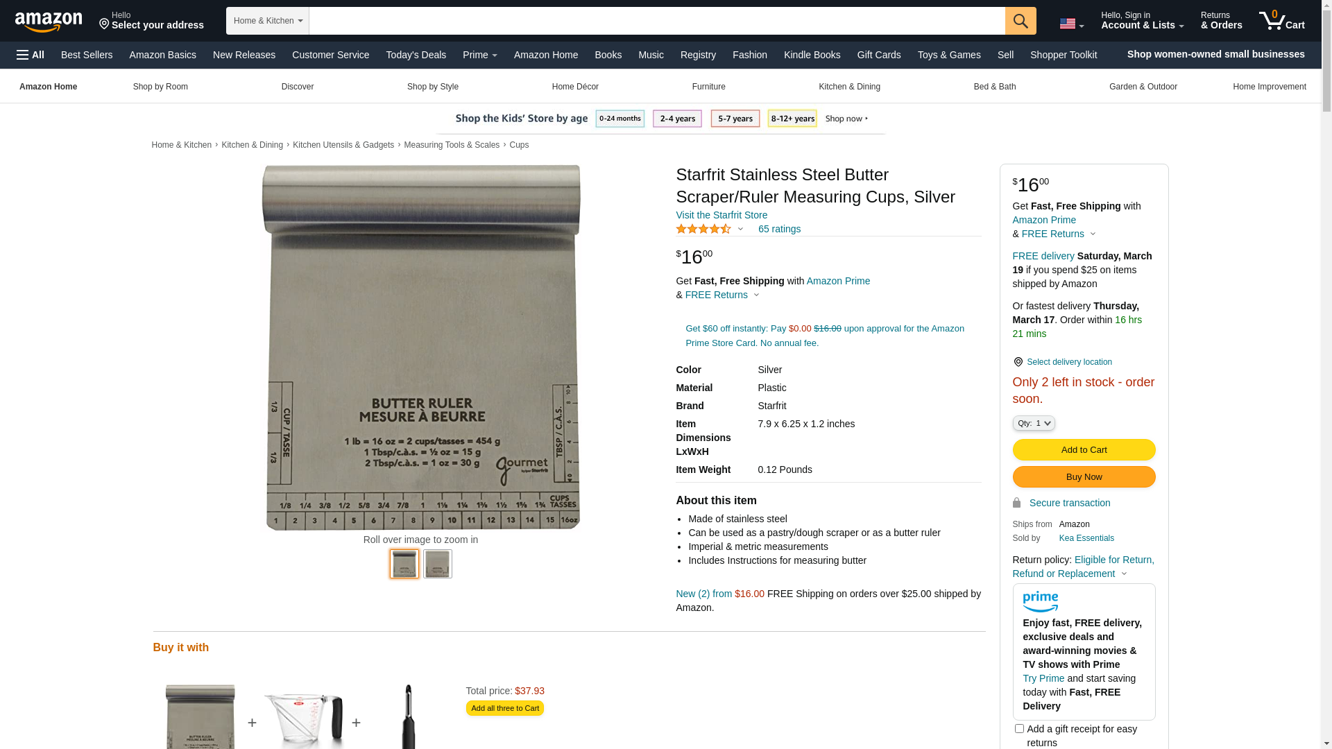 Starfrit Stainless Steel Butter Scraper/Ruler Measuring Cups, Silver 7.9x 6.25x 1.2