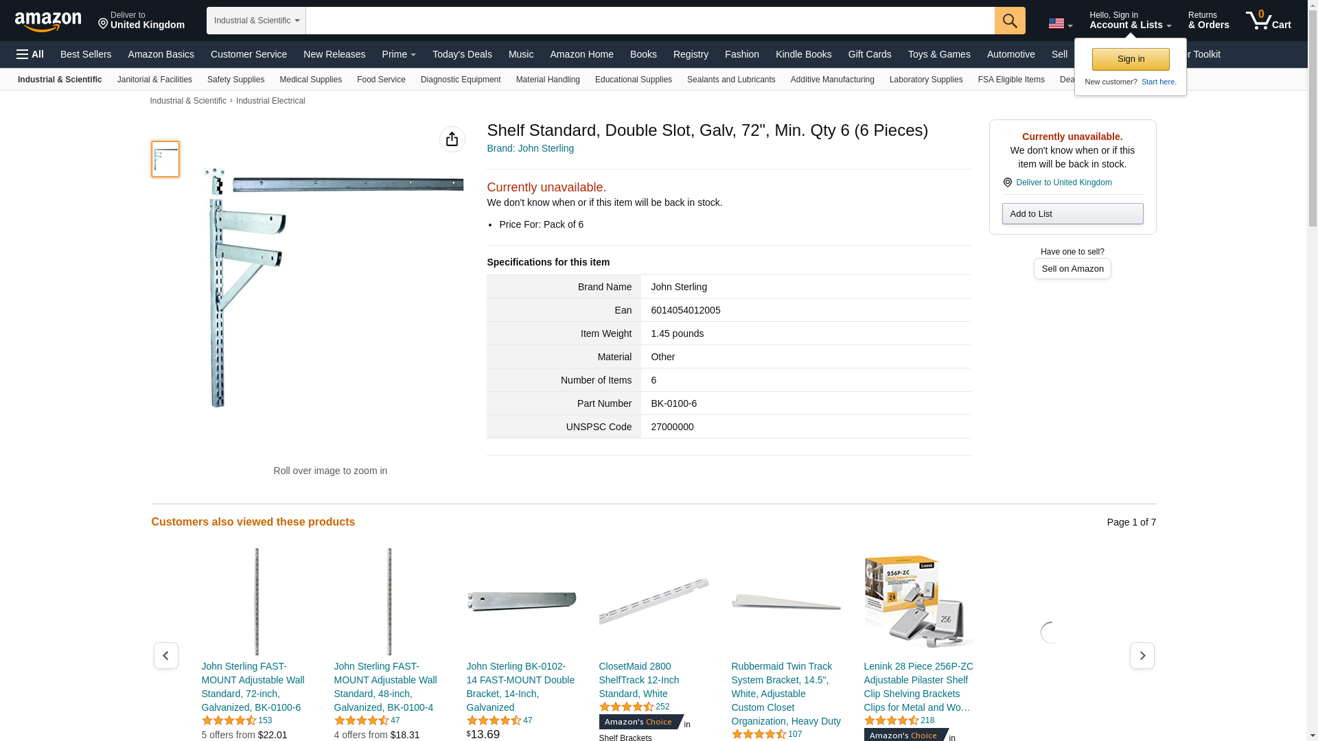 Shelf Standard, Double Slot, Galv, 72", Min. Qty 6 (6 Pieces)