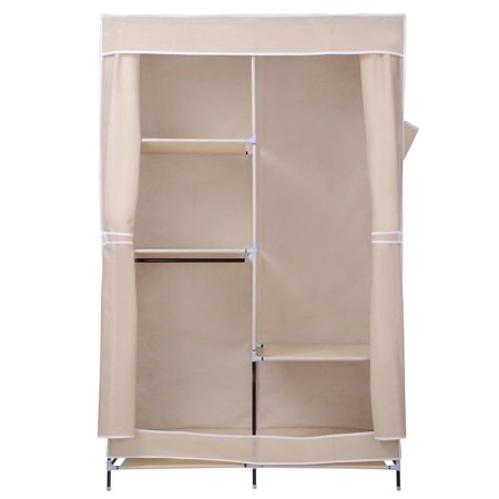 Yescom 42"x17"x67" Portable Metal Frame Non-woven Closet Clothes Storage Organizer Wardrobe with Cover and Shelves Beige