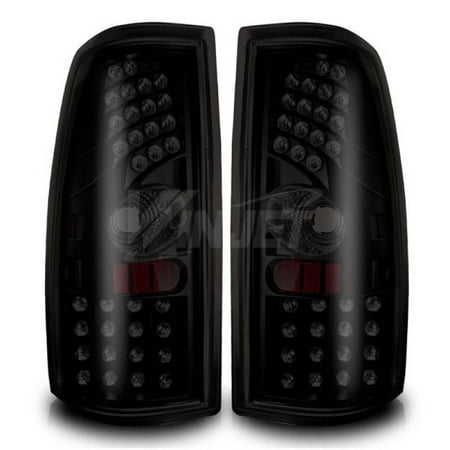 Introducing 99-06 Chevy Silverado LED Tail Lights with Black housing and Smoke lens by Winjet. Increase other driver's visibility and reduce the chances of being rear ended. Why pay triple the money for OEM replacements while you can spend less, add some style and set yourself apart from others by replacing your old or damaged tail lights with our pair (Left and Right) of SAE/DOT approved, street legal OEM fit LED tail lights. This set features LED brake/parking/turn signals. This product is made of OEM grade ABS plastic and made by OEM approved manufacture that meets or exceeds OE standards.