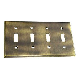 Square Bevel - Square Bevel Quadruple Toggle Switchplate in Antique Brass - Colonial Bronze 6008-4T-5