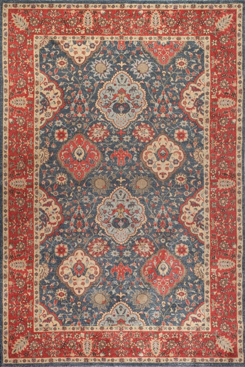 Mahal Power Loomed Runner Rug- Navy - Red- 2 ft. 2 in. x 8 ft.