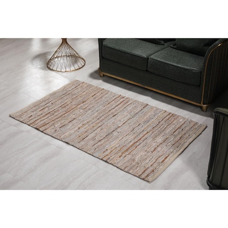 3'x5' Handwoven Beige Leather/Cotton Rug with Metallic Leather