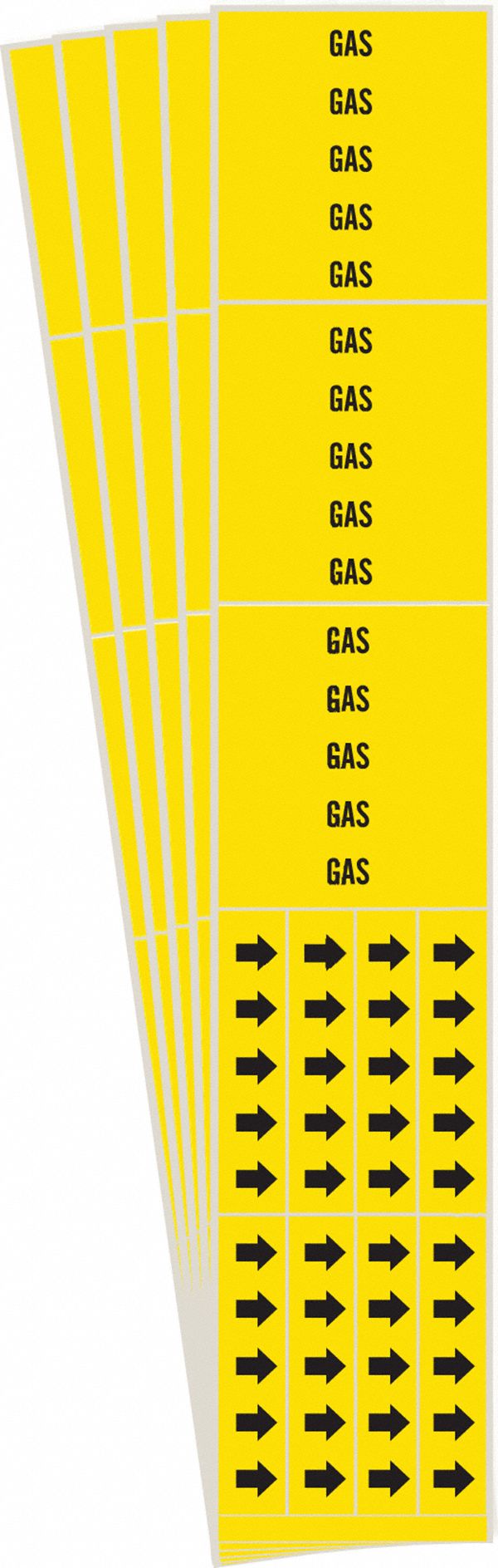 Brady 7119-3C-PK, Gas Pipe Marker with Arrows Vinyl Black on Yellow 3 per Card, 5 PK, Legend 'Gas'