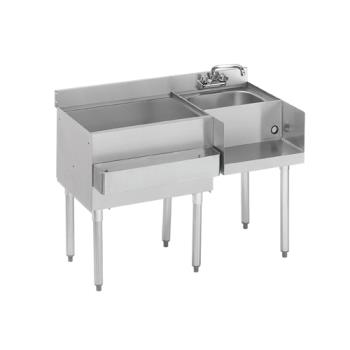 Krowne Metal (18-W54L-7) 54" 1800 Series Standard Workstation Features Stainless steel construction 4" high backsplash Removable bottle wells included 4" center wall or deck mount faucet included Specifications Blender Station Length: 18" Bowl Dimensions (H x W x D): 6" x 14" x 10" Cocktail Workstation Type: Cold Plate Cold Plate Circuits: 7 Dimensions (H x W x D): 33" x 54" x 22.5" Ice Bin Depth: 12" Ice Bin Length: 36" Ice Bin Location: Left Ice Storage Capacity: 115 lbs. Ship Weight: 127 lbs. Full 1 Year Warranty