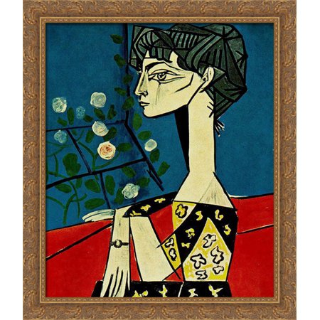Jacqueline with flowers 28x34 Large Gold Ornate Wood Framed Canvas Art by Pablo Picasso