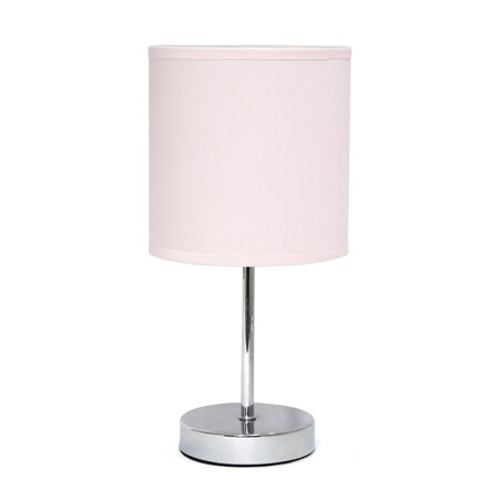 Simple Designs LT2007-BPK Chrome Mini Basic Table Lamp with Fabric Shade, Blush Pink