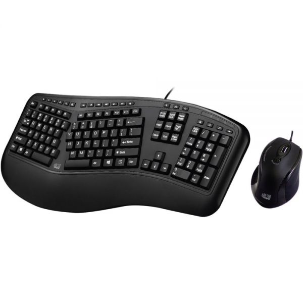 Adesso AKB-150CB - Ergonomic Keyboard and Mouse Combo, Wired, Multimedia Hotkeys, Split Keys Design, Built-in Palm Rest for Comfort - Compatible for PC & Windows XP/7/8/10