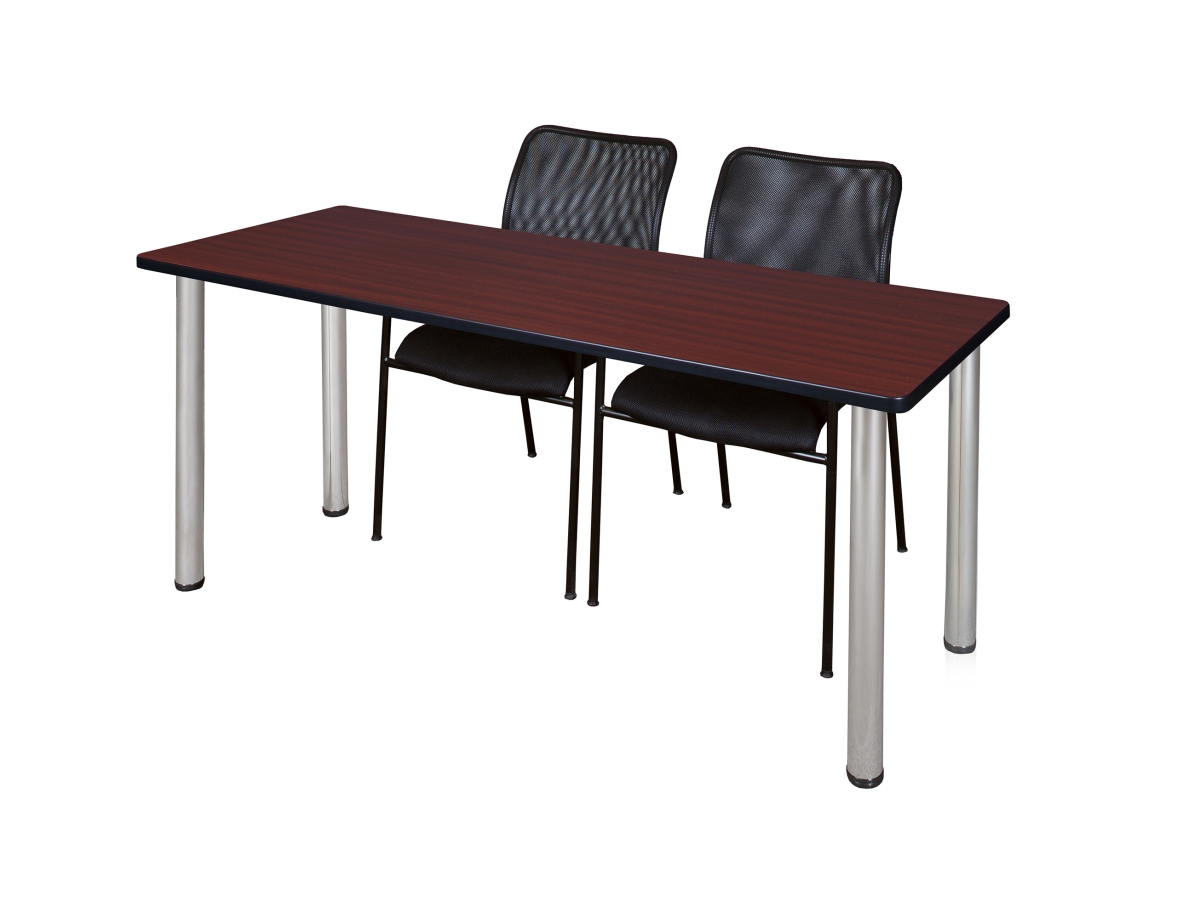 Regency Kee Training Table Set with 2 Mario Chairs, 72" x 24", Mahogany/Chrome