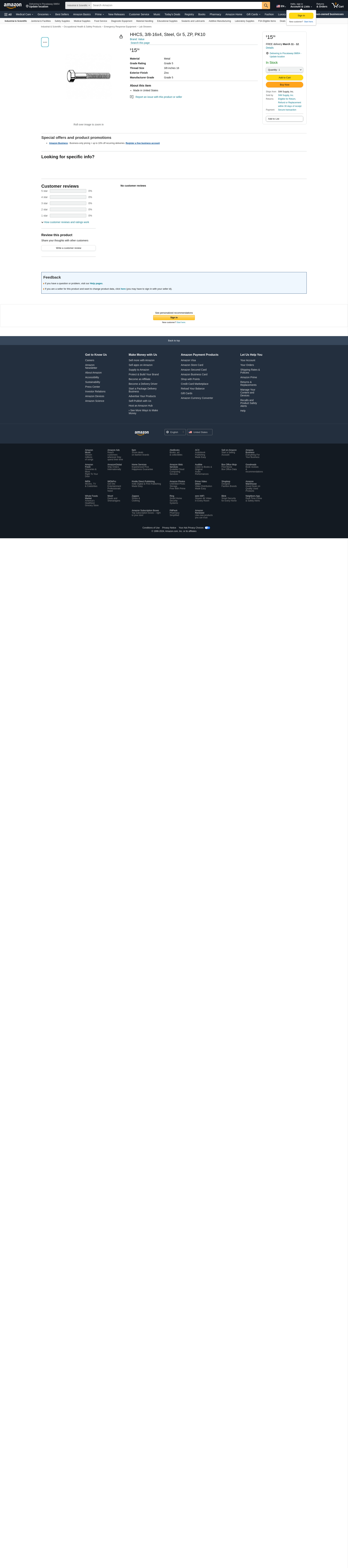 | Feature | Price For: Each Basic Material: Steel Head Height: 15/64" System of Measurement: Inch Dia./Thread Size: 3/8"-16 Rockwell Hardness: C19 to C30 Fastener Finish: Zinc Plated Head Width: 9/16" Thread Type: UNC (Coarse) Thread Direction: Right Hand Tensile Strength: 105, 000 to 120, 000 psi Head Type: Hex Fastener Length: 4" Item: Hex Head Cap Screw |