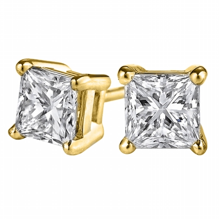Fine Jewelry Vault UBERP005AAPRY14D 14K Gold Push Back Princess Cut Natural Diamond Studs, 2 Stones
