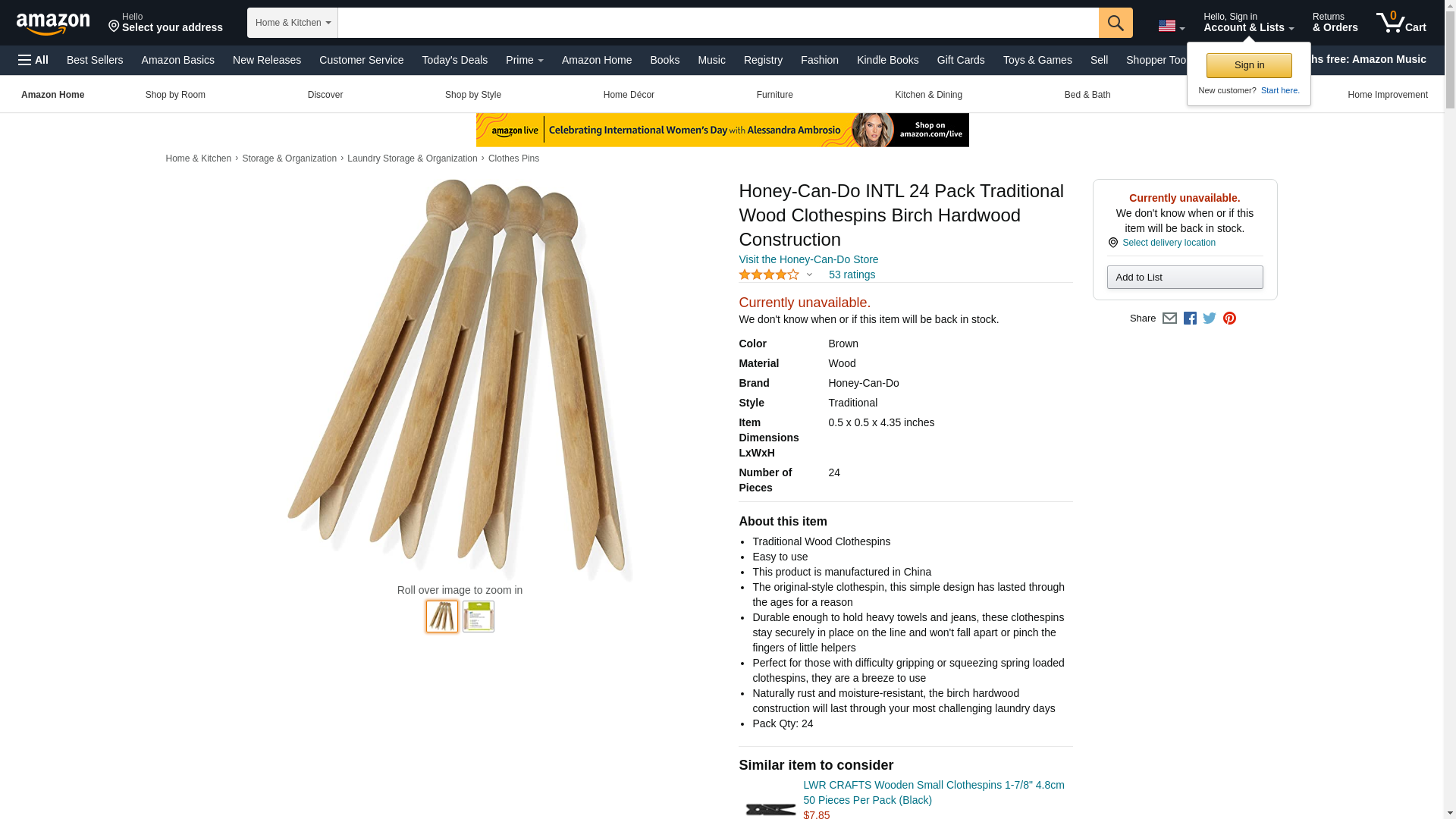 Honey-Can-Do INTL 24 Pack Traditional Wood Clothespins Birch Hardwood Construction