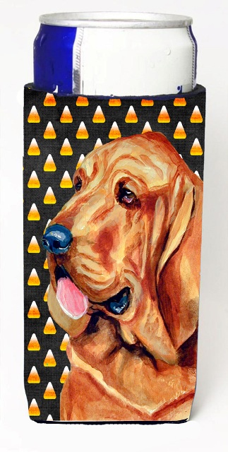 Caroline's Treasures LH9072MUK Bloodhound Candy Corn Halloween Portrait Ultra Hugger for slim cans Can Cooler Sleeve Hugger Machine Washable Drink Sleeve Hugger Collapsible Insulator Beverage Insulate
