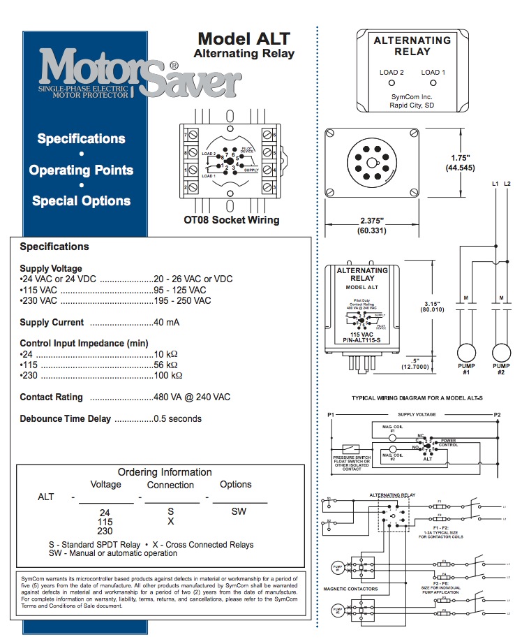ALT-230-S SYMCOM MOTOR SAVER 8 PIN ALTERNATING RELAY - Most Electric