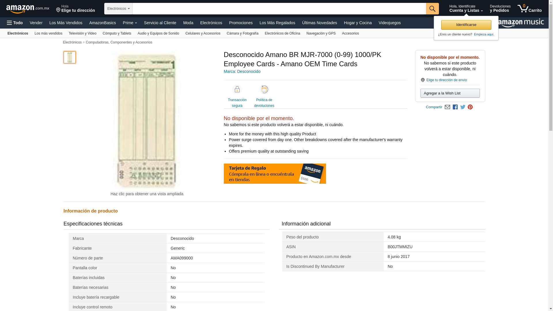 AMANO AMA099000 Amano Br Mjr-7000 -0-99- 1000-Pk Employee Cards