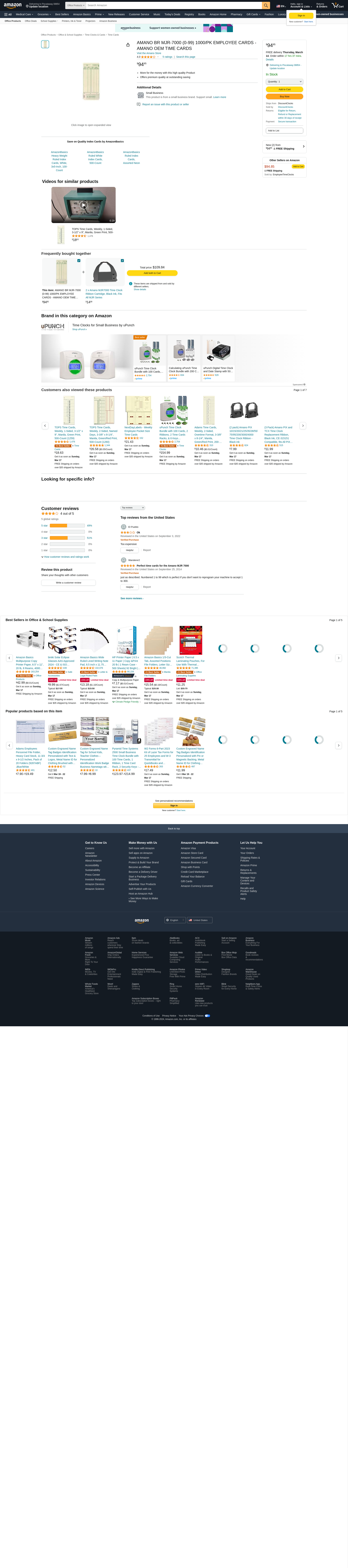 Amano Time Card,7 1-4x3 1-4in,PK1000 AMA099000 ZO-G3365467 - SIM Supply
