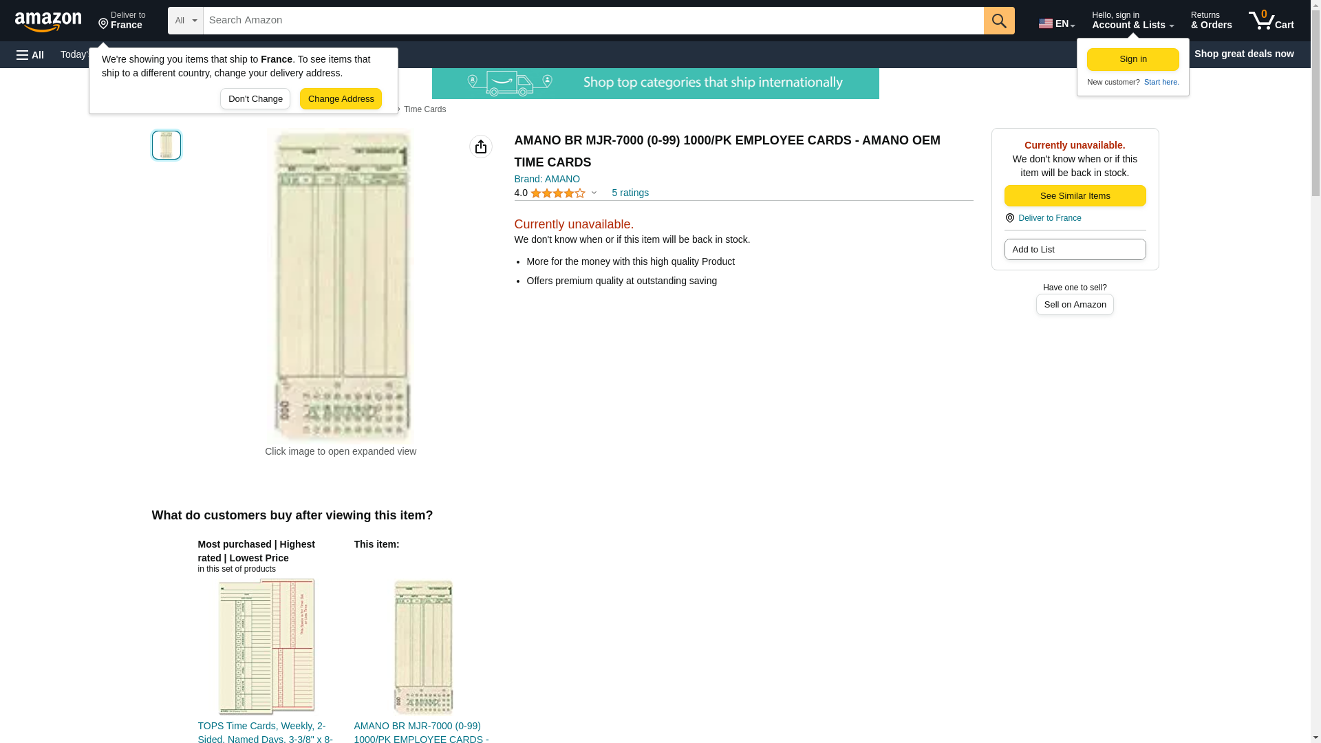' Time Cards, Payroll, Records All Pay Periods, Number of Sides 1, Height 7-3/8 In., Width 3-1/4 In., For Use With Amano MJR 7000/8000/8000EZ, Package Quantity 1000 '
