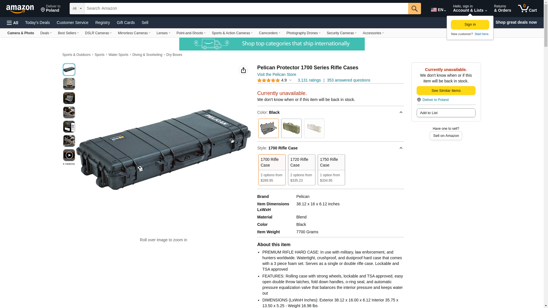 - Pelican 1700 Long Case with Foam (Black) 1700 000 110 B&H Photo