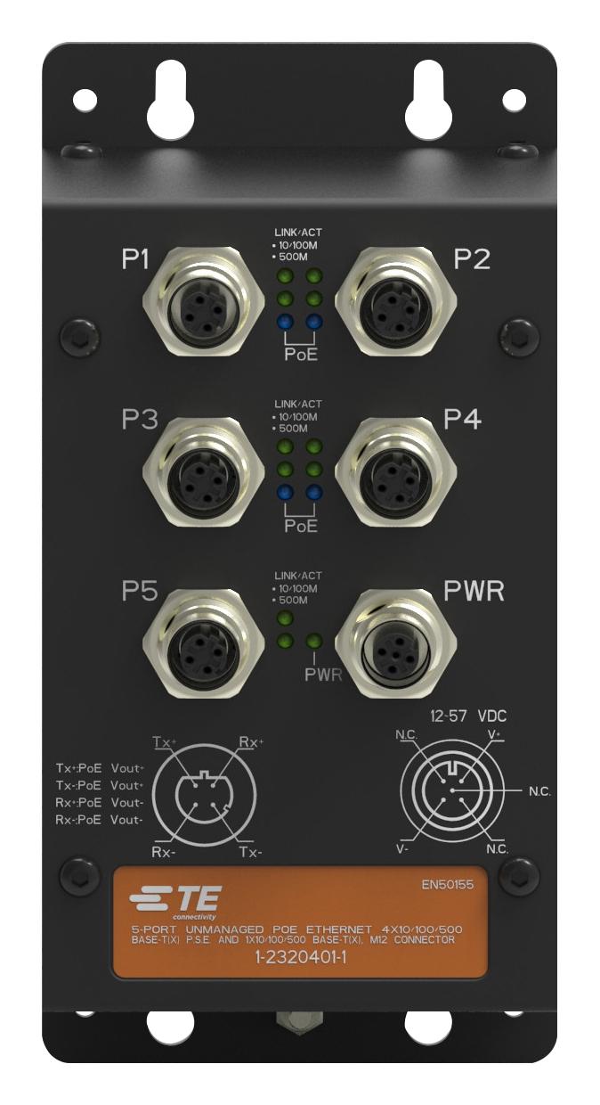 TE CONNECTIVITY - 1-2320401-1 - ENET SW, 10/100/500MBPS, M12, Wall