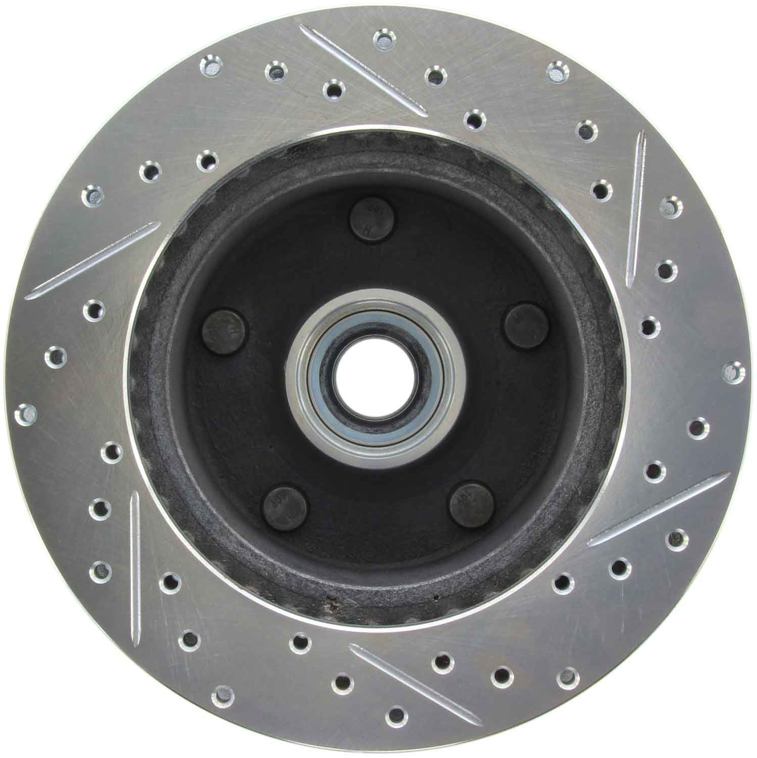 - Drilled plus slotted design improves bite and thermal capacity