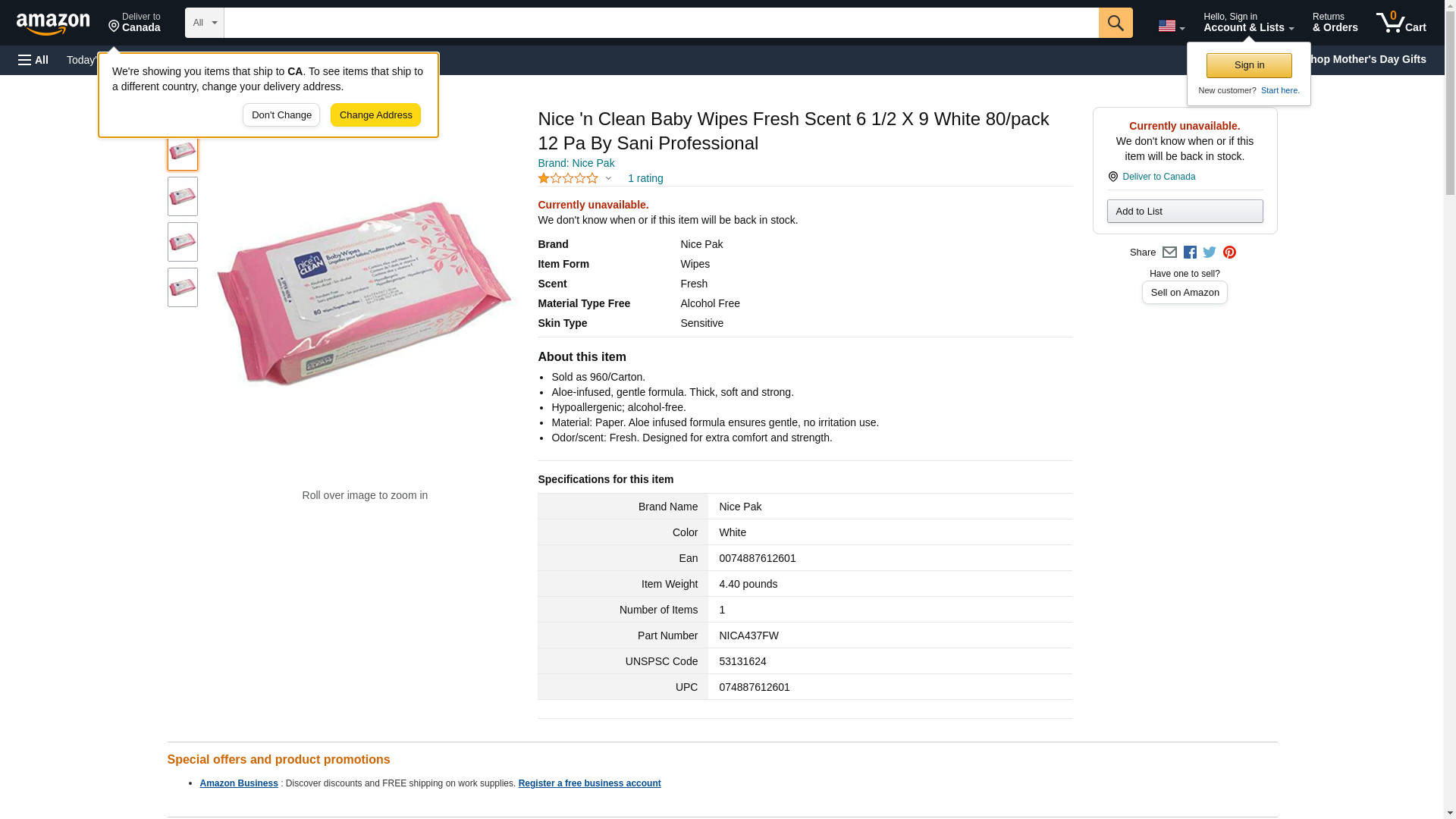 Sani Professional A437fw Nice 'N Clean Baby Wipes Fresh Scent, 6 1/2 X 9, White, 80/Pack, 12 Pk/Ct