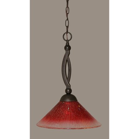 Toltec Lighting Bow Dark Granite Pendant with 12-Inch Raspberry Crystal Glass