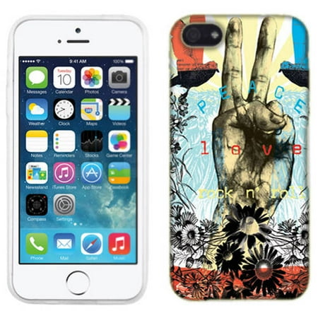 <br /> <b>Mundaze Peace Love Rock Phone Case Cover for Apple iPhone 5C:</b> <ul> <li>This non-bulky and lightweight phone cover case is suitable for the Apple iPhone 5C and covers the back and sides of your device</li> <li>Stylish design shows off your personal style while keeping your device covered</li> <li>Scratch-resistant and durable material is made to last everyday wear</li> <li>Fully compatible with the Apple iPhone 5C, this phone cover features an accurate fit for your phone's ports, buttons and camera functions</li> <li>Made of quality plastic material</li> <li>Phone case only; device is not included</li> </ul>