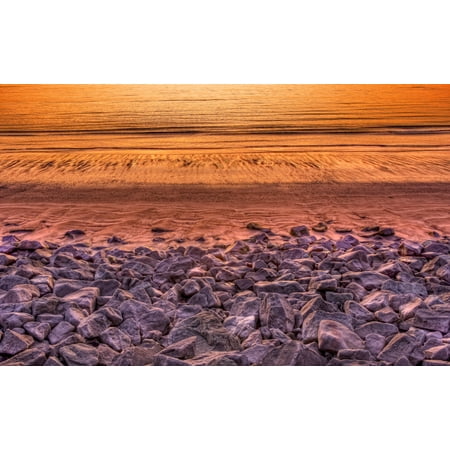 Panoramic Images Stretched Canvas Art - Seashore with the Midnight Sun, Olafsvik, Snaefellsnes Peninsula, Iceland - Medium 15 x 24 inch Wall Art Decor Size.