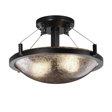 Justice Design Group Fusion 2-Light Semi-Flush - Matte Black Finish with Mercury Glass Artisan Glass Shade