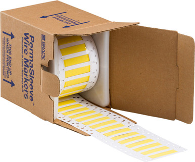 Brady Low Smoke Zero Halogen Double Sided PermaSleeve Heat Shrink Tubing, 0.25" Dia x 2" W, Yellow, Roll of 500 Each