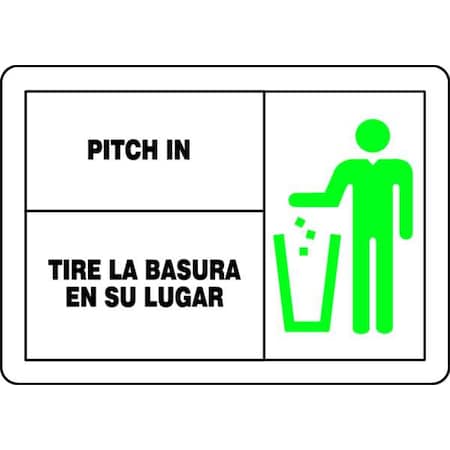 Accuform SBMHSK971MVP Sign, Pitch in/TIRE LA BASURA EN SU LUGAR", 7" Length x 10" Width x 0.055" Thickness, Plastic, 7" x 10", Green/Black on White
